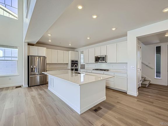 **Move in ready***Special Financing available including below market rates** Walkout Basement! Gorgeous Aspen Floor plan built by Lennar located in the fantastic new community Sunset Village! The main level boasts lots of natural light with it's 2-story great room! The main level has EVP flooring, main level bedroom, full guest bathroom, a beautiful Chef's kitchen with quartz countertops, double ovens, gas cooktop, eat in kitchen island and breakfast nook leading to the covered rear deck. Upstairs has your primary suite with en-suite spa style bathroom, a large loft area, Jack N Jill bathroom for bedrooms' 3 and 4 and bedroom # 2 with it's own full bathroom. The walkout basement is unfinished waiting for your personalization. Additional features include a 3-car garage and the home is equipped with solar. See everything Erie has to offer with its small town feel, majestic mountain views, 63,000sf community center and 20,000sf community Library! Close to shopping/dining, trails and parks!