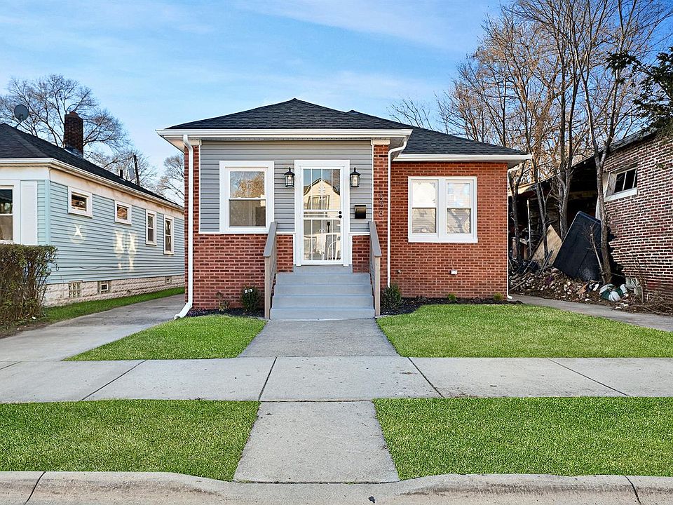 Everything new in this completely renovated brick ranch with enclosed front porch, 3 bedrooms, 2 full bathrooms and a finished basement. New roof, furnace, A/C, drywall, flooring, lighting, windows, doors, electric, plumbing. Both bathrooms have quartz countertops, custom vanities and lighting and unique tile work around tub. LR/DR combo with decorative molding. Beautiful kitchen with quartz countertops, generous cabinets and countertops and new SS appliances, Finished basement has huge rec room, full bathroom and finished laundry room. Even brickwork has been completely tuckpointed. Nothing to do but move in and make this home your own.