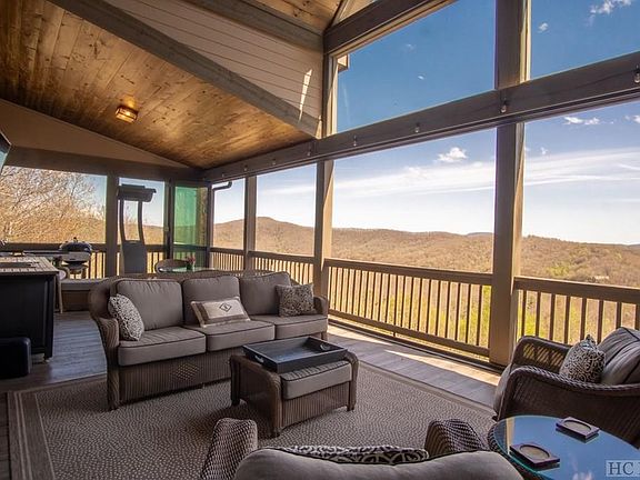 Located in the Blue Ridge mountains of western NC, this big view home was built in 2014 by one of the areas leading builders, Fern Creek Builders. This home has been lovingly maintained by the original owners and now is the time to make it your own. Home features 3 bedrooms each with their own ensuite baths. Situated on over 18 acres only 20 minutes from the village of Cashiers, this property is an outdoor lover's paradise. There are trails leading throughout the property and basic equestrian facilities are already in place. The property is in the gated community of Laurel Falls just a short distance to the communities private entrance to Panthertown Valley, a 6,300 acre USFS Wilderness Area with miles of trails for horseback riding, biking and hiking. The lower portion of this property actually adjoins USFS land and the majority of the long-range mountain view looks out over Panthertown. The full length rear covered porch has a stone faced, wood burning fireplace and unique glass panels that insulate the porch in cool weather and then all fold together to the sides to open up the porch in good weather; it's really an amazing system. The great room features ship-lap wood walls and ceilings and a floor to ceiling stone faced fireplace. The kitchen is nicely appointed and includes a farmhouse sink, beverage fridge and ice maker. The southerly mountain view has both short-range and long-range elements including Big Green Mountain. There is also very good cell reception at this location. Extras include a paved driveway with ample parking, an automatic stand by generator, alarm system and a standing seam metal roof.