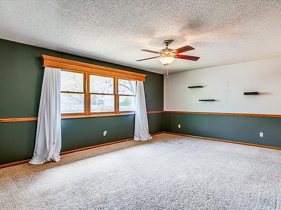 Nestled on a quiet cul-de-sac in the sought-after Goddard School District, this home offers fantastic curb appeal with a partial brick façade, well-manicured landscaping, and a mature tree that adds character to the front yard. A side-load garage and oversized driveway provide abundant parking space. Inside, you’ll find a spacious living room with bright windows that flows into an open dining area and kitchen. The dining space sits in front of French doors that lead to the back deck, creating a seamless indoor-outdoor connection. The kitchen is both functional and stylish, offering extensive cabinet and counter space, an eating bar peninsula, crown molding, and coordinating tiled backsplash and countertops, all complemented by gleaming hardwood floors that extend through both the kitchen and dining areas. The master bedroom includes double closets and an en suite bath with a spa-like shower tiled all the way to the ceiling. Two additional bedrooms and a second full bath complete the main floor. Flexible laundry options with hookups available on both the main floor and in the basement! The main floor space, currently used as a pantry, is designed for a stackable washer and dryer—offering convenience without sacrificing style. The finished basement has a huge family room with a fireplace and full brick surround, plus two more finished rooms—one with a walk-in cedar closet and built-in entertainment center, and the other with built-in shelving and cabinets—either of which could be converted into a bedroom with the addition of egress windows. There’s also a half bath on the lower level. Step outside to a fully fenced yard with an impressive multi-level deck featuring built-in seating and a combination of pergola and covered overhang, making it ideal for enjoying the outdoors in any season. Situated near Pawnee Prairie Park with quick access to highways, restaurants, shopping, and more, you've found a wonderful home in a fantastic location. Schedule your private showing today and come see it before it’s gone!