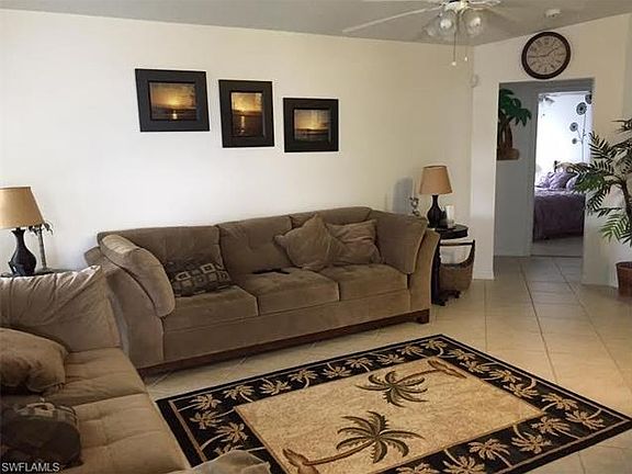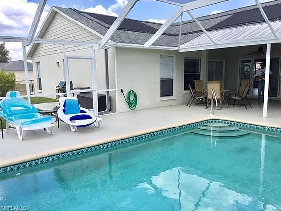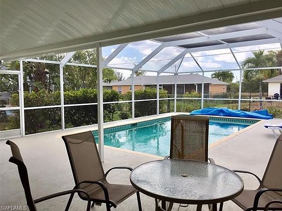Looking for a great seasonal rental? Look no further, this 4 bedroom pool home is available during the most sought after winter months - March & April 2018. Enter this light & bright home with a spacious great room & split bedrooms. The large master bedroom (king bed) with sliders to the pool and master bath with dual sinks, soaking tub and separate shower are on one side of the house. The three other bedrooms (queen beds) and guest bath are on the other side of the house. The kitchen is well equipped with a breakfast bar and is open to the dining area and the great room. Tile throughout and laundry room off the kitchen. Enjoy the tropical breezes by the solar heated pool , relax in the lounge chairs, or enjoy your meals alfresco in the large lanai. This home is centrally located with easy access to Pine Island Rd or Veterans Pkwy for restaurants, shopping & entertainment. Lawn care, pool care, internet & up to $150 electric included in rent. NO PETS ALLOWED. Fort Myers beach 20 miles, Sanibel Island 25 miles, SW Florida International Airport 25 miles.