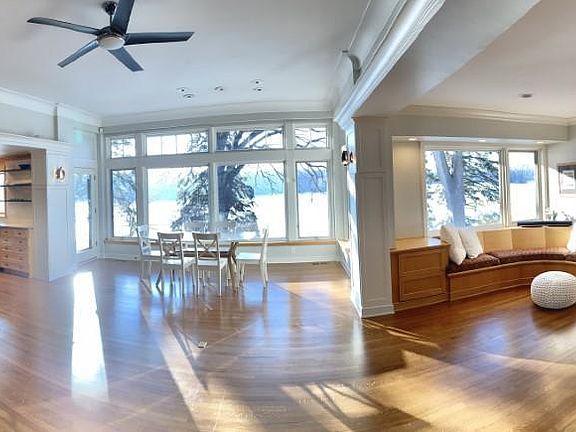 EXQUISITE & EXTENSIVE INTERIOR RENOVATION BY TEA2 AND CROWN CONSTRUCTION. PRAIRIE INFLUENCED ARCHITECTURAL GEM OF STONE & GLASS, PERFECTLY NESTLED ON ONE OF SWEENEY LAKE'S BEST SITES! BIG WATER VIEWS FROM EVERY ROOM, SOUTH & EAST FACING; STATELY OAKS & SPRUCE, GENTLE ELEVATION TO 120' OF PRIME, SANDY SHORELINE. FINELY CRAFTED W/RAISED CEILINGS, HUGE WINDOWS & ELEGANT GREAT RM OPEN TO THE NEW GOURMET KITCHEN. LAKESIDE SUNROOM IS A DELIGHT! 4 GENEROUS BEDROOMS + HANDSOME HOME OFFICE COULD BE 5TH. 3 DELICIOUS NEW BATHS INCL LUXURIOUS LAKESIDE OWNER’S SUITE W/ STEAM SHOWER & LARGE DRESSING RM. FULLY FINISHED WALKOUT IS A DREAM W/ HEATED FLRS THRU-OUT, MEDIA RM, 2ND KIT & FINISHED WORKSHOP WITH SINK & WORK BENCH. 3 FRPLCS, OAK FLOORS, HEATH CERAMICS & PORCELEIN TILES THROUGHOUT. HEATED GARAGE, EPOXY FLOOR. EXPANSIVE BLUESTONE PATIOS PERFECT FOR OUTDOOR ENTERTAINING & WILDLIFE VIEWING. BOAT & SKI ON SWEENEY; FISH, KAYAK & PADDLEBOARD 2 LAKES, ALL BORDERING WIRTH PARK. WHY LIVE ANYWHERE ELSE?