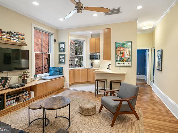 Introducing a rare opportunity to own a beautifully designed one-bedroom, one-bath condo in a boutique building just one block south of Logan Circle. This home boasts impressive 10-foot ceilings, large historic windows that flood the space with natural light, and gleaming hardwood floors throughout. Whether you're seeking the perfect pied-à-terre or a serene retreat in the city, this condo has it all. The kitchen features double-height cabinets for ample storage, quartz countertops, four refrigerator drawers, and a dishwasher. The bathroom, fully renovated in 2021, was reoriented to create space for a full-size washer and dryer, offering both luxury and convenience. One of the standout features of this home is its clever storage solutions, including a spacious coat closet, cabinets in the vestibule, and custom storage benches with seating under the living room windows. Step outside to the pièce de résistance—a large private rear patio exclusively for this unit. Shaded by a trellis, it’s an ideal space for outdoor entertaining or simply unwinding after a long day. Located just one block from the vibrant 14th Street corridor, you'll enjoy easy access to Whole Foods, Vida Fitness, Studio Theatre, Le Diplomate, and an array of shops and restaurants. This is city living at its finest. Seller prefers KVS Title.