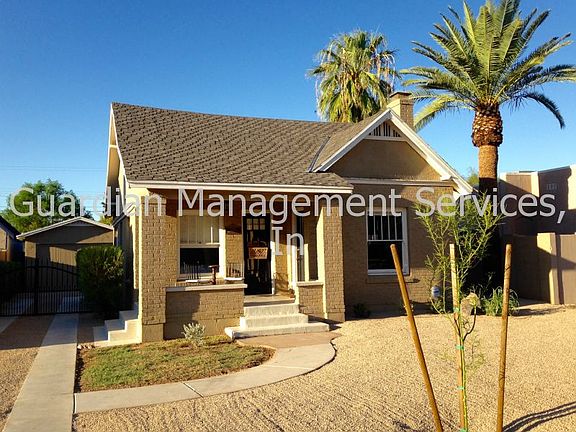 THIS LOVELY TUDOR HOME IN THE HISTORIC AREA HAS MANY UPGRADES WITHOUT LOSING ANY OF THE CHARM. WOOD FLOORS IN THE MAIN HOUSE WITH RESTORED WINDOWS WITH ROMAN SHADES AND PICTURESQUE FIREPLACE. THE GUEST HOUSE IN BACK HAS A MAIN LIVING AREA, SEPARATE BEDROOM AND BATHROOM. MOST OF THE MAJOR COMPONENTS OF THE HOUSE WERE UPGRADED IN 2007. THE KITCHEN HAS A GAS STOVE, NEWER REFRIGERATOR AND OTHER MAJOR APPLIANCES INCLUDING A DISHWASHER. THERE IS ALSO A FULL SIZE WASHER/DRYER IN THE MAIN HOUSE. THE FRONT YARD WILL BE LANDSCAPED WITHIN THE MONTH OF OCTOBER AND ONCE A MONTH YARD CLEAN-UP WILL BE PROVIDED. CONVENIENTLY LOCATED BY THE I10 FREEWAY AND DOWNTOWN PHOENIX. OWNER MAY CONSIDER ONE SMALL PET. SECURITY SYSTEM USAGE WOULD BE AT TENANT'S EXPENSE. Please note: fireplace is not functional.