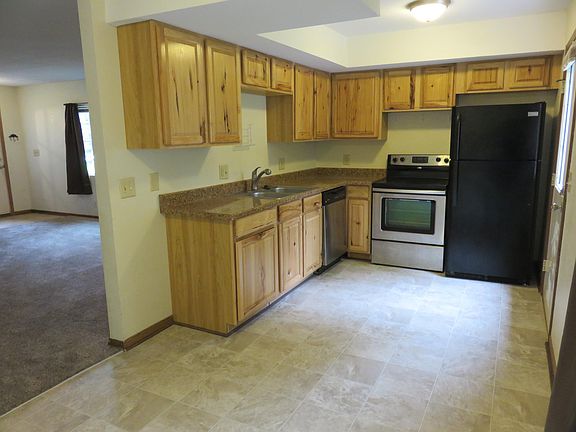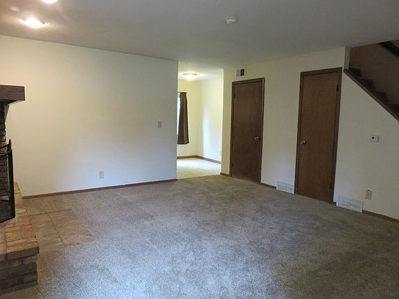 This 2 bedroom 1 bathroom duplex sits on a quiet street near Abbie Sawyer Elementary School and just minutes away from Iowa State University. On the main level you'll find a spacious living room with beautiful brick wood burning fireplace, updated eat-in kitchen with refrigerator and stainless steel dishwasher and stove, and a back door that leads to the back patio. Upstairs you'll find two bedrooms and a bathroom that includes a washer and dryer. One car attached garage. No basement. Dogs accepted with a $250 pet fee and $25/month pet rent. No assistance programs. Background and Credit Check Required