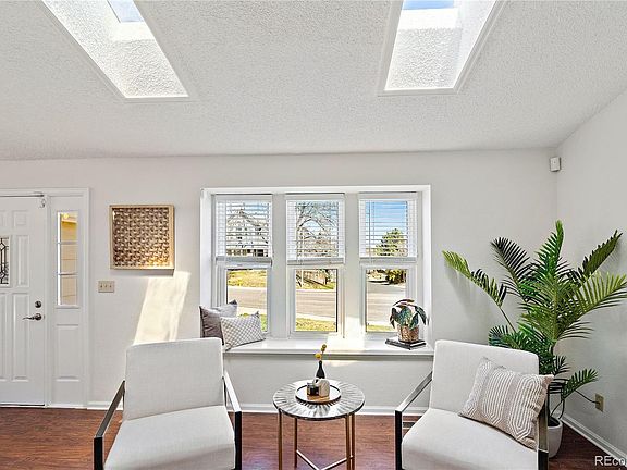 Step inside this charming home and be greeted with an open concept main floor flooded with an abundance of natural light and accentuated by vaulted ceilings and skylights. A perfectly updated eat in kitchen with granite countertops, tile flooring and newer appliances offers the home chef a spacious prep area and flow. The main floor living space includes the primary bedroom suite including a beautifully modernized bathroom, and a secondary bedroom completes the open concept main floor. Downstairs the finished basement features an entertainment area, an additional large bedroom, bathroom, laundry room and space for additional storage. The backyard allows for an ideal grilling experience with a back deck for summer dinners and stamped cement patio adding to your exterior living space and accommodating your favorite outdoor fun, all while including a storage shed. This lovingly cared for and updated ranch home includes the ideal floor plan with 3 bedrooms and 2 bathrooms and is located in a corner cul-de-sac with no neighbors behind you. Just blocks away the community is highlighted with multiple shopping centers and parks within a short distance and easy access to the newly complete G-line. No HOA. Come and see this wonderful home today!
