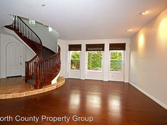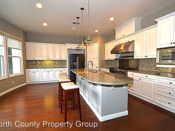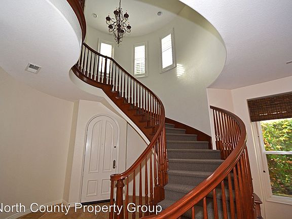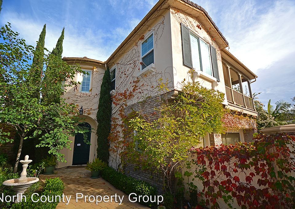 Highly Upgraded Carmel Valley (San Diego) Rental Home - Vista Santa Barbara Neighborhood - Immaculate rental home located in Carmel Valley (San Diego), CA in the highly desirable Vista Santa Barbara neighborhood. This incredibly spacious home sits on a quiet street and features a gated courtyard entry to the front door. A formal foyer into the home features travertine stone, high ceilings and a stunning twisting staircase. The home boasts large formal living and dining rooms as well as a large family room with fire place open to a modern gourmet kitchen with granite counters, large cooking/prep island with dining bar, and stainless steel appliances. The exquisite home features new carpeting and wood floors throughout, as well as over sized windows which allow plenty of natural light to brighten each room. The backyard is a delightful entertaining area with a patio of interlocking stones, grass play area, and patio fireplace with chimney for lounging in the evening around an outdoor fire. The huge master bedroom suite is upstairs and is the perfect getaway featuring views of the surrounding hills, fireplace, and spa-like bathroom with huge walk in closet, over sized tub, and glass enclosed shower. The home has one guest bedroom with bathroom downstairs and 3 other upstairs bedrooms also with their own full bathroom. Upstairs there is also a large bonus den / play area that can be turned into a family room or study as well as a separate laundry room with included washer & dryer. There is also an attached 3-car garage. The home is situated in the highly acclaimed Solana Beach Unified School District (Solana Highlands Elementary, Carmel Valley Middle School, Torrey Pines or Canyon Crest High School). Commuting is quite convenient with quick and easy access to Interstates 5 and Highway 56. It is also in close proximity to shopping, restaurants, movies and grocery in Del Mar Highlands and just minutes to beaches in Del Mar and La Jolla. Listing and marketing information provided is deemed reliable and accurate but not guaranteed - agent, broker, and tenant should confirm all property information and specifications before entering rental agreement. For more information or to schedule a walk-through and showing contact North County Property Group at (858) 792-5797. (RLNE3713578)