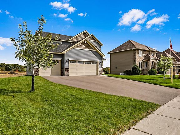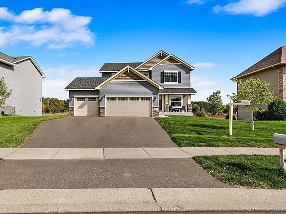 This beautiful 2-story home is move in ready! Featuring a front porch, granite countertops, center island & breakfast bar, walk in pantry, kitchen window, stainless steel appliances, 4 bedrooms on one level and main floor laundry. The spacious master bedroom with ceiling fan and walk-in closet, is flooded with natural light from the large picture window. You'll enjoy granite counters, dual sinks and a soaker tub with separate shower in the master bathroom as well. Work from home in the designated main floor office with French doors for privacy. Enjoy the large walk-out basement family room & 5th bedroom & add value when you finish the rough-in full bathroom. Other features include in-ground sprinklers and a 3 car sheet rocked & insulated garage! Conveniently located to shopping, restaurants and Bunker Hills Regional Park, Dog Park and Golf Course!