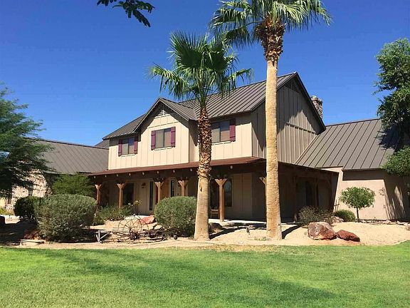 Gorgeous Country home for sale in Yuma on 2 Acres with paved roads. Beautifully planned and executed 5 Bedroom & 3 Bath with huge game room for all your family activities. Rich wood flooring and stone fireplace accentuate the striking granite kitchen countertops. Watch the sunrise over the purple mountains from the oversized deck. Tropical yard boasts a sparkling swimming pool plus a hot tub. Lovely landscaping includes many trees and over an acre of irrigated grass. Parking galore with HUGE 4+car Garage