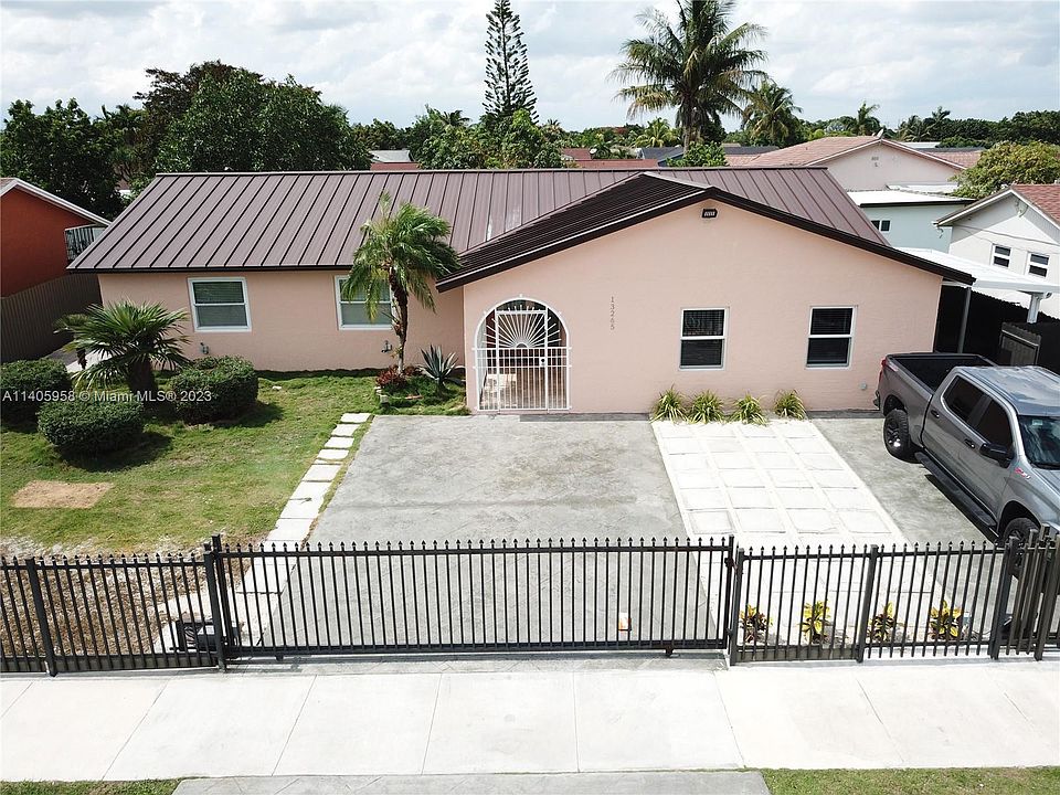 Beautiful 3-bed 2 -bath home with added 1-bed and 1-bath in-law quarter. Completely renovated with all new appliances, impact windows, metal roof, concrete driveway, automatic gates, and paver throughout. A covered back porch opens up to a backyard with lush fruit trees and lovely patio area. Don't miss this incredible opportunity!