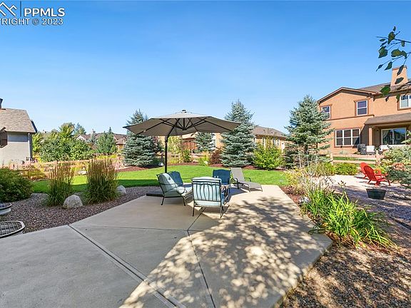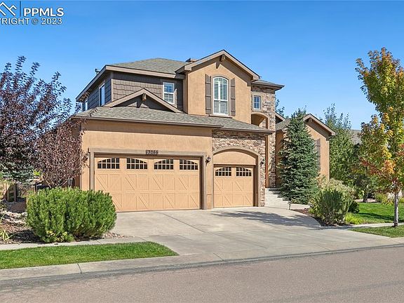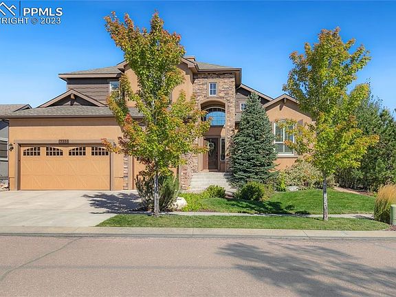 Nestled in the heart of Flying Horse, this home is a masterfully designed residence that combines the best of luxury living with a convenient location. Upon entering, you'll be immediately drawn to the open living room where the stone fireplace serves as a focal point. The main level master suite features a five-piece master bath and spacious walk-in closet. The convenience of an attached laundry room adds to the well-thought-out floor plan. Hardwood floors flow throughout the main living areas, lending warmth and elegance to the home.The separate dining room provides an ideal setting for hosting memorable dinners with friends and family. The upper level presents a versatile loft area, perfect for a home office, playroom, or relaxation space. Views of the mountains and the Air Force Academy can be enjoyed out of the upper level bedrooms. The large finished basement is a great place for entertaining, featuring a wet bar and ample space for games or movie nights. Storage abounds in this home, ensuring that everything has its place and your living spaces remain clutter-free. In addition to storage under the stairs, there is a large finished storage closet with shelving. The three generously-sized bedrooms in the basement all feature large closets and easy bathroom access. The fully fenced backyard boasts a large patio, mature trees and a fire pit to enjoy Colorado nights all year round. Your new home is situated just around the corner from Frog's Leap park. Flying Horse is an ideal location, situated near the prestigious Air Force Academy with breathtaking views of the Pikes Peak mountain range. Convenience is paramount, with new shops and restaurants in close proximity and walking distance to District 20 schools. An optional membership to the Flying Horse Country Club grants access to a world of amenities, including a championship golf course, tennis, pickleball, spa & fine dining; elevating the Colorado lifestyle.