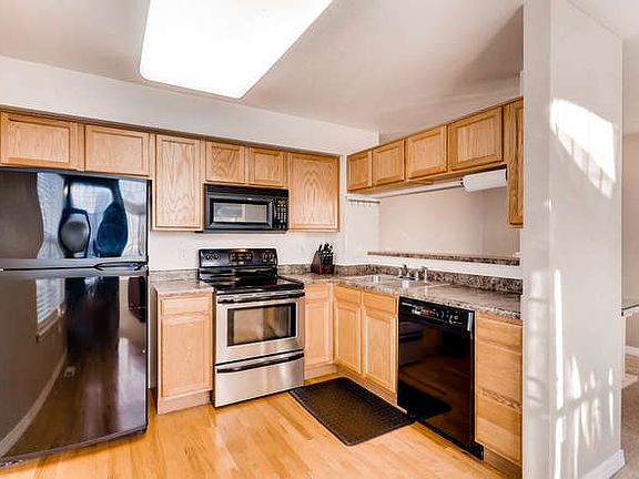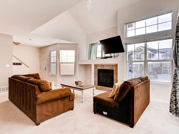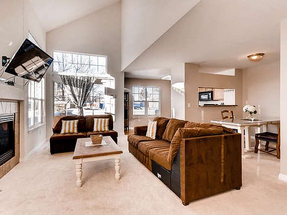 Welcome home to Home Farms! This beautiful end unit townhome features a wood floor entry and kitchen, a formal dining room, a bright open living room with a gas fireplace and an open kitchen with all appliances included. The main floor also features a half bathroom and large storage closet. The upper level offers 2 large bedrooms and a full bathroom with new tile floor and paint. The full basement is ready for your finish with a bathroom rough in and easy floor plan for an additional bedroom or living space. The side yard offers just enough room to enjoy the Colorado seasons and the detached 1 car garage offers ample parking or storage. Minutes from many amenities and attached to the community park. The perfect starter home and it's waiting for you!