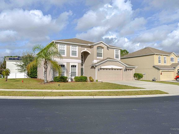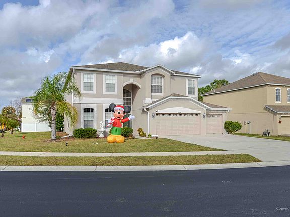 The sought-after Community of Sterling Hill holds this large, lavish home. The community features a pool, exercise room, playground, tennis courts, basketball court, and much more! Perfectly placed on a corner lot. Over 3400 Sqft inside provides plenty of room for all. The kitchen has wood cabinets, great counter space, stainless steel appliances, a breakfast bar and is open to the family area. A full guest bath on the first floor along with a bedroom, great for company. Upstairs you will find a wonderful loft area. The master bedroom has an abundance of space, and a very large walk-in closet. Double doors lead you into the master bath where you find his and her vanities with a soaking tub in the middle, and a walk- in shower. The beautiful screened in lanai with private back yard.