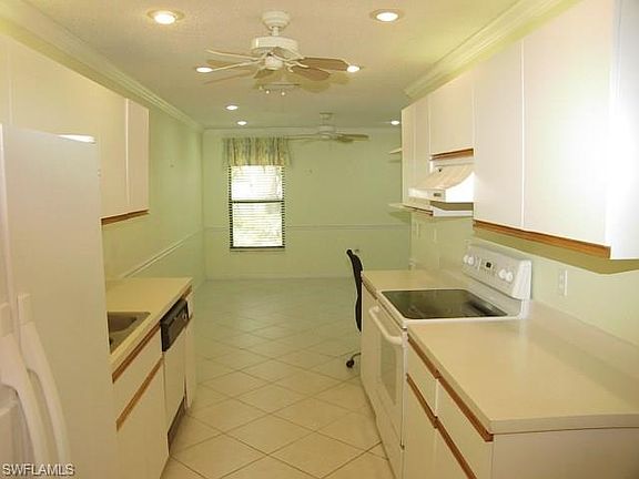 Conveniently located gated community just off Daniels and 41. Just a short walk to the Bell Tower shops and the movie theater. Open living and dining room area with high ceiling and engineered wood flooring. Master bedroom has engineered wood floors as well. Carpet has just been replaced in the guest bedroom. Kitchen features a large 12 ft. x 9 ft. eat in area with sliders to the lanai and a courtyard window view. The home needs a little further updating and is also priced accordingly. Price, value and location make this one an easy choice.