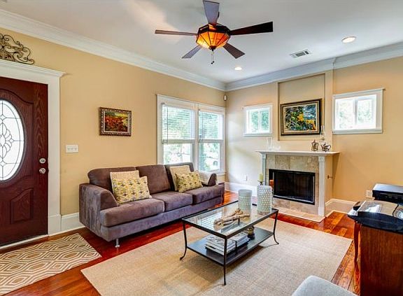 Listing Agent: ERIC PETERSON; (678) 522-5149; ericp@kw.com; This modernized bungalow was updated down to the studs w/ new electrical, hardwoods, thermolpane windows, concrete siding, HVAC, water heater, insulation & roof. The bright & airy living room sets the tone for the rest of the home. The very large kitchen offers granite counters, stainless appliances and cherry cabinets. The oversized master suite & bath offers a walk-in closet, double vanities and Travertine tile while bedroom 2 feels like a junior master suite w/ double sized closets + bedroom 3 is used as a home office. Large deck & level lot overlook private backyard