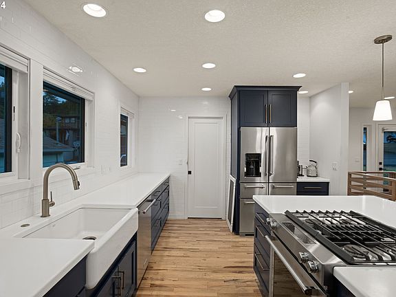 Discover modern elegance in the heart of coveted Hallinan near downtown Lake Oswego where sophistication meets comfort. This beautifully updated home boasts a harmonious blend of classic design and contemporary upgrades. Step inside to find a spacious open-concept layout featuring polished hardwood floors and abundant natural light that create an inviting ambiance throughout. The gourmet kitchen is a chef’s dream, equipped with high end stainless steel appliances, quartz countertops, custom cabinetry, walk-in pantry plus an eat up bar and coffee station. Adjacent to the kitchen, the living areas feature a sleek modern fireplace centered in the great room and a dining room idyllically nestled next to a wall of windows. Sprawling hardwoods throughout. The main level floor-plan ensuring a cozy yet stylish space to entertain guests or unwind. The primary and second bedroom are also located on the main floor plus a flex work space and mudroom alcove off the entryway. Retreat to the main floor primary bedroom, complete with a luxurious en-suite bathroom that includes a dual vanity, large walk in shower and designer fixtures. Each additional bedroom offers ample space and comfort with modern touches throughout. Lower level provides a gigantic bonus room with two oversized bedrooms, full bathroom plus a laundry room and custom built in at-home office/work area. Beyond the home's exquisite interiors, enjoy the outdoor oasis boasting a hot tub, sauna and two outdoor living rooms with heaters. On the main level offers a sprawling composite deck w/ peek a boo territorial views. This haven is nestled near several parks- including Hazelia and George Rogers Park with river access. Plus shops, restaurants and a gourmet grocery store all in the neighborhood. A brand-new recreation center is being built nearby, offering future-ready facilities for fitness, community events, 9 hole executive golf course and sports activities. Top rated LO schools!