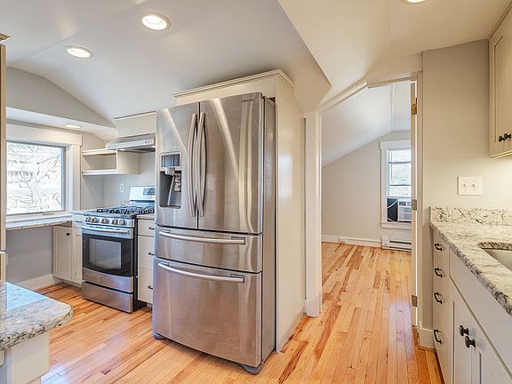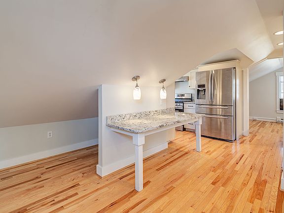 This beautiful light filled apartment above a retail wine and gift shop is ready for a new tenant. This space was renovated with high end finishes, maple flooring, new paint and more. The spacious kitchen offers a big granite work/dining space, stainless side by side fridge, dishwasher, and gas stove/oven. The primary bedroom is very roomy with 2 wall drawers for clothing. The smaller bedroom/office space has a walk in closet. Utilities are included.