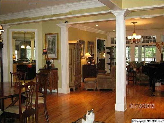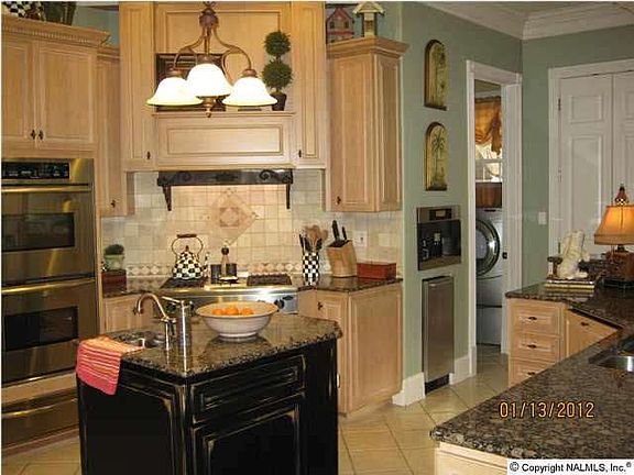 JUST 6 MIN. TO HSV HOSP. Stocked pond, htd pool w/custom waterfall, 7 car gar. Kit. w/dbl. oven, gas cooktop, Miele coffee maker, Scotsman ice mkr & BI fridge. MBR w/3 closets, dbl vanity & lg. shower. Det. gar. w/ ofc/workout rm w/kit. & BA. Camera sec. sys. $995,000. MLS#685417. text: T303752 to 81035