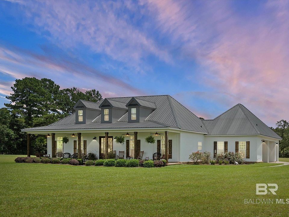 Welcome to your private retreat in Creola! Tucked away at the end of a private drive, this custom-built 4-bedroom, 3.5-bath home sits on nearly 5 beautifully cleared and manicured acres. Built in 2017, the home offers a spacious open-concept layout with soaring 18-foot cathedral ceilings, a stunning chandelier, and a cozy wood-burning fireplace in the main living area. Stylish wood-look porcelain tile flooring flows throughout the home, combining elegance with easy maintenance. The kitchen is a chef's dream, featuring a pot filler, ample counter space, a walk-in pantry, and great functionality for everyday cooking and entertaining. A custom mudroom offers convenient storage and organization for busy households. The luxurious primary suite boasts his and hers walk-in closets, a double slipper soaking tub, and a custom walk-in shower. The second bedroom also enjoys its own private bath and walk-in closet. Enjoy peaceful evenings on the screened rear porch or under the covered grilling area. Additional features include a double carport, outdoor storage room with roll-up door, and a new 40x60 pull-through shop complete with power and water for your RV, boat, or workshop needs. Nature lovers and hunters will appreciate that the back of the property borders Forever Wild Management Land, offering added privacy and access to pristine natural surroundings. Don't miss your chance to own this rare gem. Schedule your private showing today! Buyer/Buyer's agent to verify all information during due diligence. Buyer to verify all information during due diligence.
