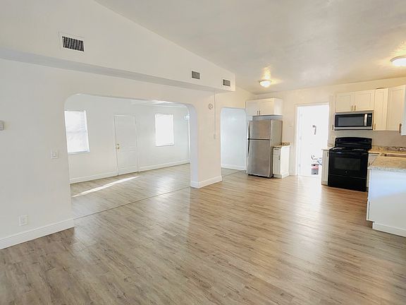 This charming 2-bed, 1-bath single-family home offers a bright, open-concept layout connecting the living room, kitchen, and dining area perfect for easy, comfortable living. All walls have been freshly painted, and the home includes extra closet space and standard appliances.