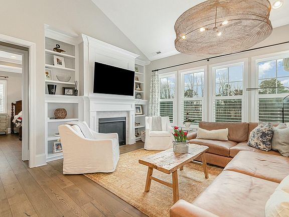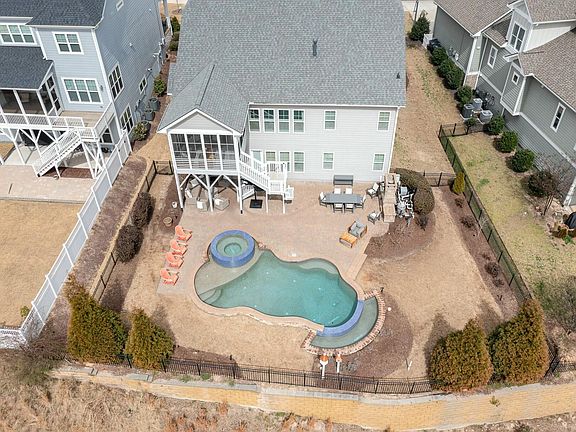 Welcome to Your Personal Retreat in the Coveted Sweetwater Community! This custom-built Elm Street Builders home seamlessly blends comfort, style, and modern living. Nestled on a beautifully landscaped lot, it boasts luxurious upgrades, high-end finishes, and a resort-style backyard perfect for entertaining. At almost 4000 square feet the main floor features engineered hardwood throughout and an open-concept design. The primary suite is a private retreat with a spacious layout, walk-in closet, dual sinks, and a walk-in shower. Two additional bedrooms share a connected bath, while a stylish half bath adds convenience for guests. The gourmet kitchen is a chef's dream, complete with JennAir appliances, quartzite countertops, a large island, and a walk-in pantry. The living area, enhanced with custom built-ins, flows effortlessly to an EZ-slide screened-in porch overlooking the expansive backyard. The lower level offers even more space, including a large bedroom, full bathroom, and a versatile flex room—perfect for a media room, gym, or private lounge. Step outside to your resort-style backyard, featuring a paver patio, multiple seating areas, an outdoor gas fireplace, and a stunning infinity-edge heated saltwater pool and spa, professionally maintained weekly. Luxury touches throughout include crown molding, custom window treatments, wood plantation shutters, and a two-car garage. Recent upgrades include a new roof (2020, under warranty), EZ-slide porch panels (2022), and a full interior repaint (July 2024). Located in the sought-after Sweetwater community, residents enjoy top-tier amenities, including a clubhouse, pool, fitness center, playgrounds, dog parks, and scenic walking trails with access to greenways. With a new Harris Teeter now open and exciting new restaurants, a brewery, and shops on the way, luxury and convenience are at your doorstep. Don't miss this incredible opportunity—schedule your private showing today!