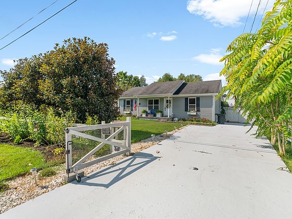 This French country-style gem with split bedroom plan boasts hardwood floors throughout and beautifully tiled bathrooms with updated counter height vanities. The kitchen is a chef's delight with tall custom cabinets featuring slide out shelving, organizer drawers and soft close, butcher block countertops, farm sink, and a stunning tile backsplash. Primary bedroom with walk in closet, bedroom 2 and 3 with closet organizers, Insulated blinds and new doors enhance energy efficiency, while vinyl siding and tilt in windows add modern convenience. The HVAC system is only six years old, as well as the water heater and the roof is only 12 years old all updated for your peace of mind. Step outside to a nature lover's oasis with a privacy-fenced yard, custom chicken coop, your birds will love their new home! Berry patch, weeping willow, apple and magnolia trees, 3 raised garden beds—a true garden lover's paradise!