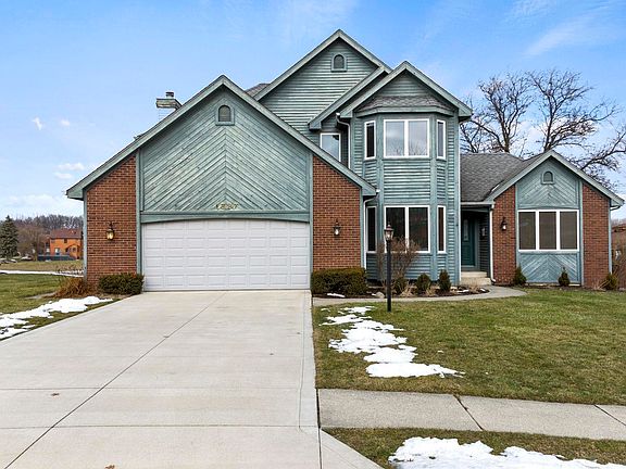 Spacious 4 bedroom, 2.5 bath two story with 2500 sqft of living space on a partial unfinished basement! Huge lot with a beautiful view of the pond! The home offers a LR with a floor to ceiling brick fireplace and access out to the 3 season room, large eat-in kitchen with center island, formal dining room, GR & den right off the foyer. Updates include, replaced driveway 2017,Furnace & AC July of 2021, Kitchen fridge & washer June 2022.