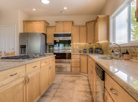 Immaculate 3400sq ft Home on 2 Acres of Fully Fenced Park Like Landscaping. Huge 2700 sq ft RV Shop + New Storage Shed. So many upgrades. Granite Counters with Travertine tile back splash. Large Trex Deck. New Double Convection Oven. Gas Cook top. Butler's Pantry. Theater Room with retractable Screen. 2 Water Heaters. Just Painted Inside and Out! This home is move in ready. At the end of a Cul-de-Sac, Walking Distance to the Movies and Just Minutes to the Freeway. Did I mention the 300ft Creek w/ Waterfall?