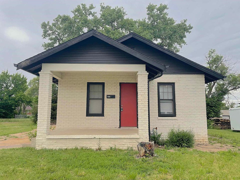This 2 bedroom 1 bathroom Northeast Wichita home is located in an area undergoing significant redevelopment. The covered porch welcomes you into the living area which includes wood flooring and a fireplace. Other interior features include two bedrooms each with wood flooring, as well as a bathroom with a bathtub/shower combination. The tiled kitchen leads you towards the rear of the home, where you will find the tiled laundry area containing washer and dryer hookups. The basement is unfinished and in need of repair; proceed with caution. This home is located near Wichita State University, and has been rented for $650/month in the past.
