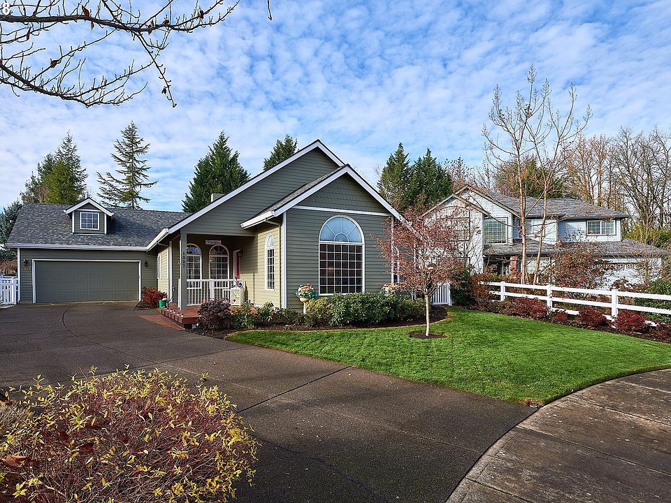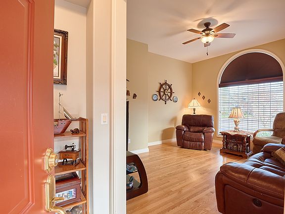 Very well maintained single level home on cul-de-sac in area of nice homes. High ceilings. Open floor plan with wood floors in main living areas. Office/den in place of a 3rd bedroom. Lots of storage above garage. Large master suite with walk-in closet, soaking tub and large shower. French doors to covered deck. Roof is only 6 yrs old.