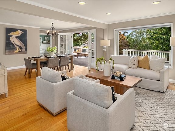 Beautiful craftsman home on a huge oversized lot in the best location in Edmonds! Steps to the bowl with Sound and Mountain views. Spacious updated kitchen w/new cabinets, counters, appliances and a picture window outlooking a huge fully fenced yard. Dining room with french doors that lead to a 600 sq ft deck perfect for entertaining or sit by the cozy fireplace in the living room. Hardwood floors throughout main floor and new super soft carpet upstairs. Large bedroom on the main floor & two more upstairs w/a private deck off of the primary bedroom. An easy stroll to downtown Edmonds shops/restaurants. So much potential, possibilities are endless with the huge lot, unfinished basement, etc
