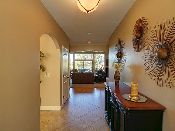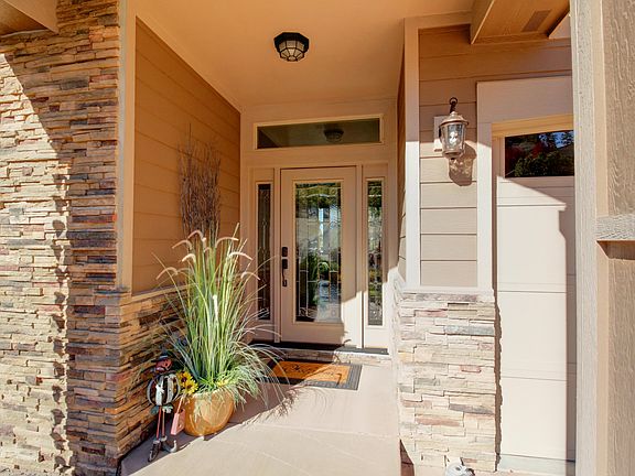 Enjoy peaceful golf community living in this gorgeous newer custom home with sweeping views from the expansive deck. An entertainer's delight, this home is beautifully designed w/ high ceilings and plenty of natural light. The open floor plan has a gorgeous kitchen w/ gas range, pantry, granite counters, island, and breakfast bar; dining area w/ built-in buffet; and living room w/ gas fireplace, tray ceiling, sliding door, and large windows overlooking the deck. This home also features a spacious master suite w/ access to the covered deck, plus a guest bedroom w/ ensuite, media room, office, half bath, and sizable laundry room. Stairs from the deck lead to a stone patio and pathway, as well as access to the unfinished basement, currently used as a workshop and storage, but has numerous possibilities and the potential to be finished out to fulfill your vision. Tastefully landscaped w/ xeriscaping and water features in the front and back yards, you'll bask in this home's tranquility.