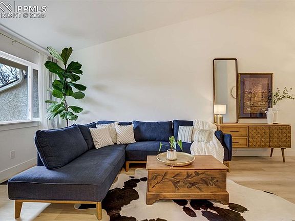 Freshly updated, move-in ready, and full of charm—this 2-bedroom, 1-bath townhome with an attached garage offers unbeatable value in one of the west side’s most sought-after neighborhoods. Step inside to soaring vaulted ceilings, a cozy fireplace, and brand-new windows and sliding glass door that flood the living space with natural light. The freshly installed luxury vinyl plank flooring adds a modern touch, while new carpet keeps the upstairs bedrooms soft and cozy underfoot. The kitchen is both functional and stylish, featuring custom cabinetry, a brand-new stove/oven, and scenic views of the private backyard. The adjacent dining area includes a contemporary light fixture and walk-out access to a peaceful, xeriscaped yard complete with new fencing and a charming pergola—perfect for morning coffee or evening gatherings. Upstairs, two generously sized bedrooms share a full bath, with the primary offering built-in closet storage for smart organization. The list of upgrades is extensive—including fresh interior paint, new interior doors, a new electrical panel and furnace, insulated crawl space, new garage door with remote. Downstairs you'll also find a roomy laundry area, additional flex space, and direct garage access. This townhome combines low-maintenance living with an unbeatable location—just minutes from Ute Valley Park, Garden of the Gods, local breweries, restaurants, and shopping. Stylish, updated, and priced to move—this is the west side gem you've been waiting for. Come take a look before it’s gone!