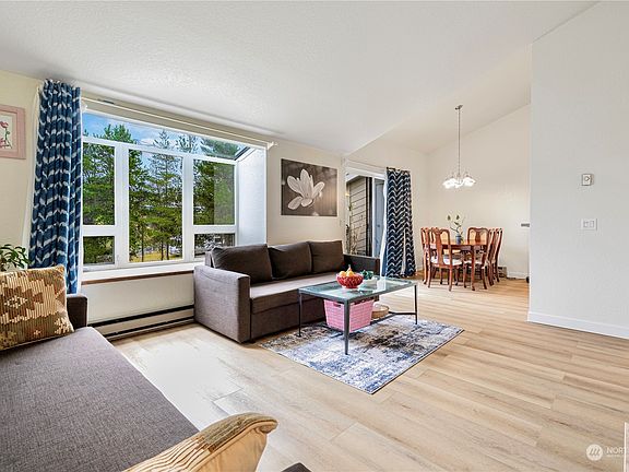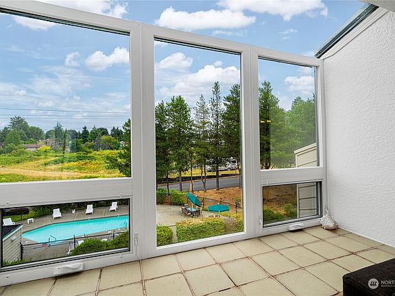 Newly updated 2-bedroom 1.5 bath condominium nestled in the quiet Sunset Ridge community. This top floor view home offers vaulted ceilings to bring in tons of natural light to highlight the new plank flooring & paint throughout. Enjoy the warmth of a wood-burning fireplace, complemented by built-in bookshelves, a bar area & a cozy window seat. Open kitchen with new quartz counter tops & newer appliances. Two good sized bedrooms. Step outside onto the deck & take in the expansive swimming pool and territorial views. HOA dues cover all essentials except electric, including the outdoor community pool. Two parking spaces. Situated near Lake Washington, major freeways, & the vibrant Renton Landing, this residence offers easy access to amenities!
