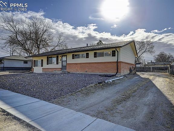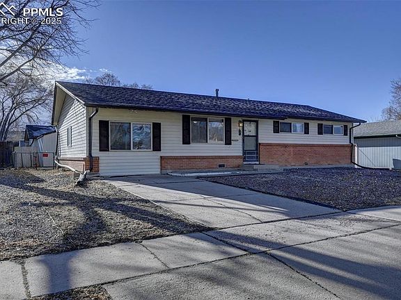 Charming single-level home in Pikes Peak Park. This move-in ready home offers 3 bedrooms, 2 bathrooms, and a bonus family room with attached storage/mudroom with an exterior entrance. The large, eat-in kitchen features newer cabinets and countertops, and a coffee bar. The primary bedroom has an attached 3/4 bath, and a spacious closet. Two secondary bedrooms have carpet and nice size closets. This home also has many upgrades to include air conditioning, newer windows, metal siding, new paint, new electrical service upgrade and New 150 AMP electrical service upgrade, New sewer line. Furnace, Hot Water Heater and AC have been inspected and serviced - this home is truly move in ready! Huge oversized 2 car detached garage (24’ x 30’) and 8X12 storage shed with wood flooring are in the back of this large xeriscaped lot (over 9200 sq ft.!!) with ample parking for motorhome, trailers, etc. Located with easy access to schools, shopping, dining, and Ft Carson & Peterson Space Force Base. Schedule your appointment today to explore the versatile comfort with lots of room both inside and out.