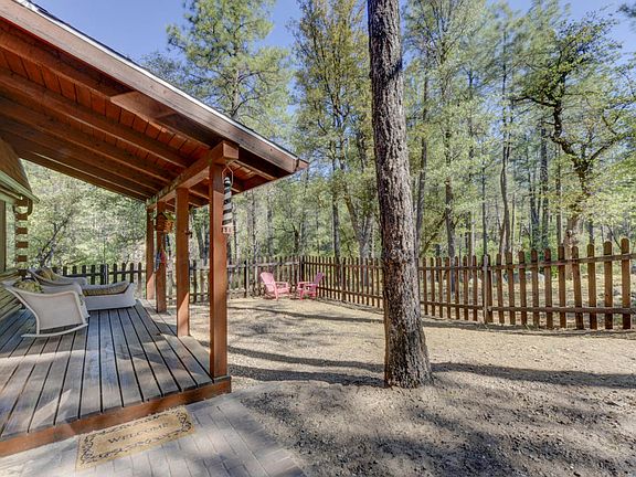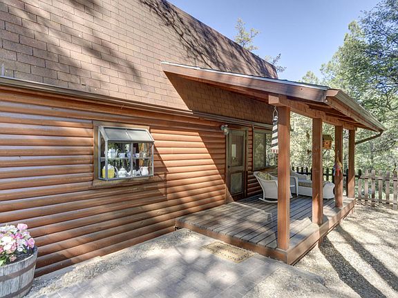 Lovely log retreat nestled in the pines of Ponderosa Park! This quality constructed home gives a feeling of seclusion in the tall pines. It's being sold furnished! It was built in 1989, is 1,150 sf, and includes 2 bedrooms, 2 baths, on over 1/4 acre. The warm, welcoming interior features high beamed ceilings, cozy wood stove in the family room, with lots of windows, and a sliding glass door out to the deck overlooking the trees. The kitchen has warm wood cabinets, solid surface counters, wood floor, and Stainless Steel appliances. Lots of room for weekend BBQ's with a deck, front patio and good sized fenced yard-complete with forested views. Don't miss your opportunity to make this cabin home, or your weekend getaway from the heat of the city!!!