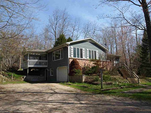 Deep wooded lot located centrally between Harbor Springs and Petoskey, has 4.4 acres. Private setting with a huge 2 car detached garage and work shed. Grand view from living room over property along with screened porch.