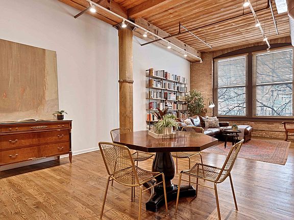 True loft living in the heart of the West Loop! Experience the best of loft living in this expansive 1,743 sq. ft. 2 Bedroom + Den/Office, 2 Bath condo at Union Park Lofts- a sought-after live/work building in one of Chicago's hottest neighborhoods. This authentic loft features soaring 12' timber ceilings, oversized windows, exposed brick, and many updates, creating a striking blend of industrial character and modern comfort. The spacious open concept living area is perfect for entertaining, with a newly updated kitchen featuring freshly-painted white cabinetry, granite countertops, stainless steel appliances, and a breakfast bar with plenty of prep space. The kitchen flows seamlessly into a generous dining area and a bright, airy living room, where exposed brick and massive windows allow for abundant natural light. Pass through impressive brick archways to the private quarters. The oversized primary suite boasts exposed brick, and a large walk-in closet with California Closet organizers. The recently remodeled en-suite bath offers a spa-like retreat with a subway tile shower surround, sleek porcelain tile flooring, and a stylish new vanity and mirror. A spacious second bedroom and a versatile den/office, a large laundry room and additional storage complete the layout. Union Park Lofts is a well-maintained boutique live/work building with a stunning rooftop deck, complete with built-in grills, pergola seating, and unobstructed panoramic city views and gigabit internet options. Ideally situated in the heart of West Loop on a tree lined street steps from Skinner Park, in the award-winning Skinner Elementary district, Union Park, and Montessori Academy of Chicago. Enjoy quick access to Chicago's renowned Restaurant Row, Madison Row, Green Line, CTA buses, Mariano's, Whole Foods, and the vibrant Fulton Market District. Additional features include a secure basement storage area (4' X 5' X 7' 6") and a bike room. One, deeded outdoor parking space in attached gated lot is available for purchase at 20K. Don't miss this rare opportunity to own a true loft in a premier West Loop location!