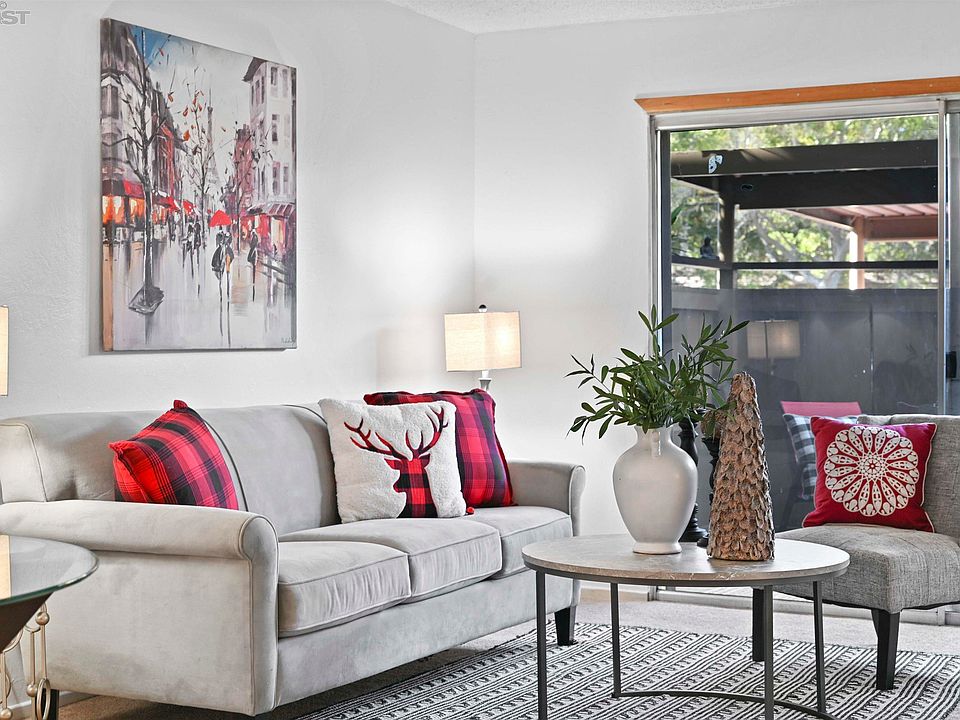 Super cute starter unit! Ideally located near Webster Street/Central shops/restaurants and just steps from Crab Cove!. Freshly painted, new carpet- large patio for entertaining. So much closet space!! The kitchen has a great passthrough making it easy to talk with your guests while you're making something amazing for them to munch on or sip. The sliding doors can stay open to the bedroom area, or close for privacy. Pictured here with a double bed- clearly ample space!!! Call this one your home for the holidays!!