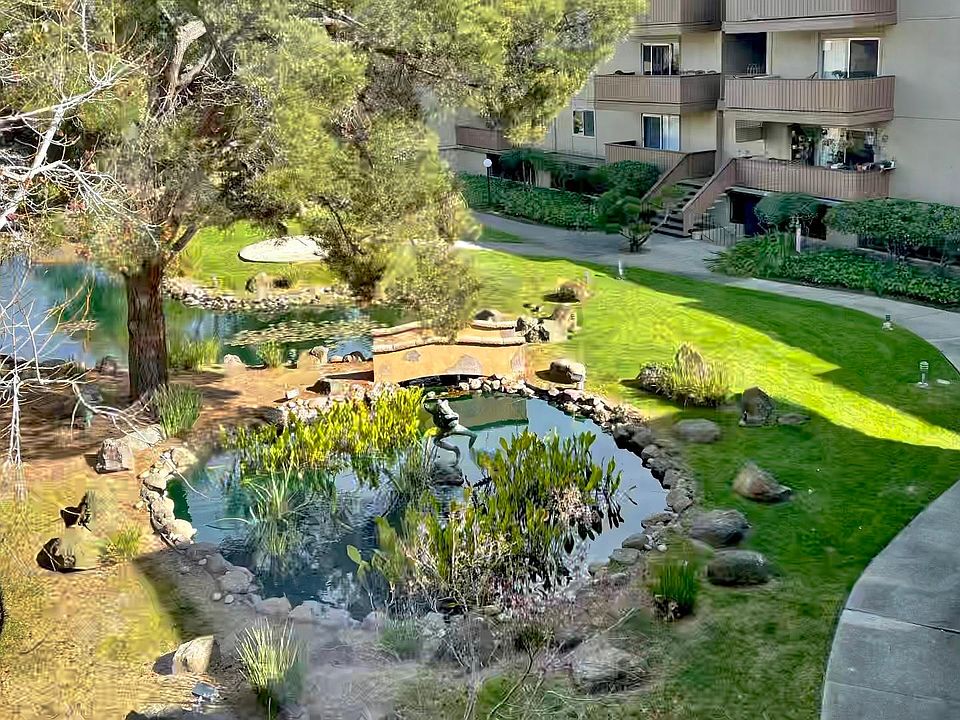 A peaceful oasis within a block of a family-friendly park and beach. One bedroom apartment on the top floor in a gated community available for rent now. Granite countertops and stainless steel appliances in kitchen. Marble tile in bathroom with tub and granite vanity. Balcony overlooking a beautiful pond. Plenty of storage space. Designated parking spot and elevator access. Take a one-minute stroll to bustling Webster Street restaurants and shops, or to watch the sunset on the beach. Don't miss the opportunity to live in this hidden gem! One year lease Water and trash included No subletting Mov