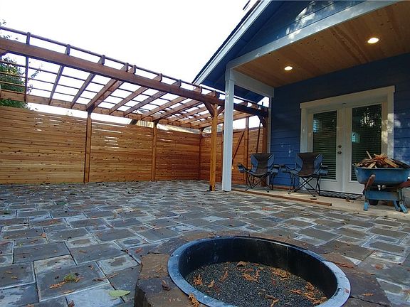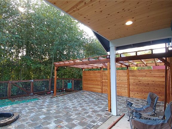NEW! Four bedroom home with large bed/bonus room above garage. Gorgeous modern kitchen with premium appliances includes Washer & Dryer, quartz counters, walk-in pantry, built-in storage, 9 ft ceilings on main floor, A/C unit, LED lighting, and blinds. Fenced yard with covered outdoor living area, firepit, power/water for outdoor bar and hot tub. Located on wooded greenbelt with trails to waterfront park. Premium finishes throughout. Clean. Modern. Functional.