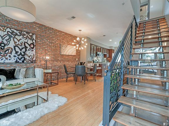 Modern 3-story townhouse style condo featuring two bedrooms and two en-suite bathrooms and a half bath on the main floor. Highly curated details, from the custom hardwood floors, brick accent wall and wooden staircase to the sleek new light fixtures and hardware result in a home that is the epitome of chic, luxury living. The gracious open floor plan showcases a stunning, spacious living room that flows seamlessly into the dining room. The well-appointed kitchen provides access to the private balcony and features stainless steel appliances, warm wood cabinetry and granite counter-tops that sparkles against the custom backsplash. Up the wood and metal staircase is the large Master and second bedroom, both with custom built-in closet organizers. At street level you can access the attached 2-car tandem garage and ample amounts of storage. This lovely home also comes with air conditioning and Nest, along with ADT/Ring ready capability and easy convenient access to Bart and Highway 880.