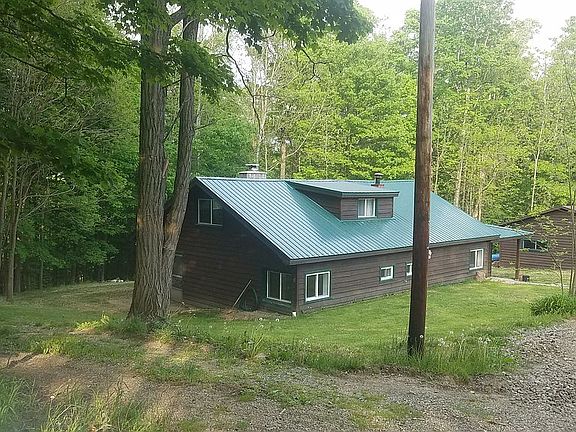 **SALE PENDING** New metal roof 2019. 10x12 mudroom addition 2019. Many updates including new drainage pipes around the outside of house. Bedroom 1 (12ftx12ft) and bedroom 2 (12ftx8.5ft) are downstairs with full bathroom and laundry downstairs as well. Bedroom 3 (15ftx14ft) and bedroom 4 (15ftx13ft not including the 'knee wall' beds) are very large and both have walk-in closets. There is also a full bathroom upstairs (5ft3inx9ft9in). Stone fireplace with newer wood burning insert (2018) the furnace heats with natural gas supplied by National Fuel but the wood insert is great too. There is a 25x30 detached garage with one bay but has room to put in a 2nd bay if desired. Lots of parking spaces as driveway runs the length of the property like a pull off area which makes it nice when you have family and friends over. With the mudroom addition we made a large covered patio (12.5ftx17.5ft) that is great for cookouts. The patio has a sliding door to access the mudroom and another double sliding doors to access the indoor dining area. Behind the house down in the woods is also a larger chicken coop that we have housed over 100 chickens in the past. For the listing price we are willing to leave the appliances currently at the residence including a large stainless steel French door frig, gas stove, built-in stainless steel dishwasher, and maytag front-load washer and dryer. Overall this is a lovely beautiful property with pleasant neighbors. (Only one neighbor directly across the road and rest of house is surrounded by landscape/woods) We love the house but have decided to become homesteaders/ farmers and needed more land. We will update with pictures of livingroom, kitchen, and mudroom as they are completed.