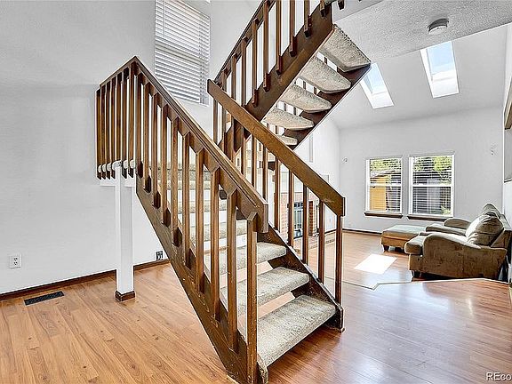 Located in the highly sought-after Maple Ridge neighborhood of West Arvada, this well-maintained 3-bedroom, 3-bathroom home offers a bright, open layout designed for comfortable living. The upper level features two spacious bedrooms and a full bathroom, while the main level includes a rare primary suite with a private three-quarter bath that is handicap accessible, making it ideal as a primary bedroom, guest suite, or home office. Vaulted ceilings, skylights, and abundant natural light enhance the welcoming atmosphere, while the spacious kitchen provides plenty of room for cooking and entertaining. A charming sunroom invites you to relax and enjoy a seamless connection between indoors and outdoors. Step outside into your private backyard retreat, where a sparkling swimming pool awaits. Pool use will require an additional maintenance fee. Recently updated and easy to maintain, the pool is perfect for both quiet relaxation and lively gatherings on warm Colorado days. The home sits on a quiet block with no rear neighbors, offering privacy and a peaceful setting. Conveniently located near parks, trails, schools, shopping, and commuter routes, this home beautifully combines lifestyle, location, and flexibility. The front entry and main floor bedroom are both handicap accessible, adding comfort and convenience to this unique opportunity.
