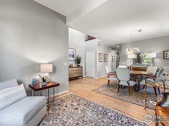 Amazing location in desirable Red Leaf! The lovely front porch welcomes you into a beautiful 4-bedroom, 3.5-bath professionally decorated home facing Tunnels Park. The main floor features a spacious open floor plan, starting with a dining room and living room, gourmet eat-in kitchen includes quartz island with seating for 5, a workstation sink, 42" cherry cabinets, marble backsplash, newer appliances- GE Cafe induction range with warming drawer, GE Cafe microwave triples as a convection oven and air fryer, Bosch refrigerator/freezer and pantry. French doors lead to the professionally landscaped yard with extended brick paver patio, mature plantings and trees and artificial turf. Large great room with custom cabinetry, gas fireplace and powder room complete the first floor. Natural hardwood floors throughout the first floor. Upstairs, you'll find a private primary suite with luxury bath and a walk-in closet. There are two other sizable bedrooms and an updated second bath. Additionally, there is a large loft area perfect for home office or family room. Convenient 2nd floor laundry room with cabinets. Beautifully finished basement offers a large bedroom, 3/4 bath and additional living space. Sub panel and electric car charger added to the garage. Access Broomfield Commons at the end of the street. Right by Paul Derda Rec Center. Legacy High School. Red Leaf neighborhood offers multiple play parks and community events. Don't miss out on seeing this well cared for home!