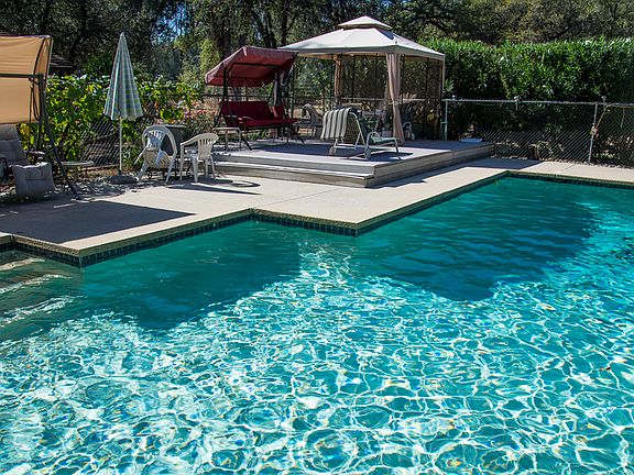 Wonderful home with a POOL on over 2 acres! Attractive updates throughout including LVP flooring, paint, modern fixtures & recessed lighting. Light & bright with separate living & family rooms. Beautiful kitchen featuring a pantry, double oven & wood accent ceiling. Elegant master suite with patio access. Storage sheds, 3 car garage and oversized parking. Enjoy the serene setting & covered patio!