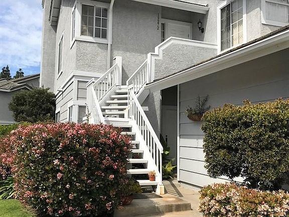 Top floor end unit in desirable Pacifica community. Great location north of Del Mar Heights Rd, just east of I-5. Two bedrooms, two bathrooms, one car detached garage. Vaulted ceilings, good natural light, and A/C! Upgraded with granite countertops in bathrooms, bamboo and travertine floors; newish carpet in bedrooms. Fireplace and built-in shelves in living room. Sunny, tranquil balcony off living room and second bedroom. Full-sized washer and dryer in unit. No pets, no smoking., unfurnished. Available first week of August for 12-month lease. Close to I-5, I-56, One Paseo, Del Mar Village, Del Mar Fairgrounds, restaurants, shops, entertainment, beaches, golf and more. Convenient and fun! No pets, no smoking. Tenant pays all utilities, SDGE, water, sewer.