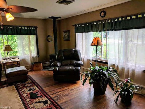 Private and serene cozy cabin with bark-on rough cut siding and green metal roof with lifetime warranty on private and wooded 10 acres. This horse property is in excellent condition featuring a freshly painted barn with 3-4 stables and riding area, 2 fenced pastures, 2 chicken coops, newer pole barn and roof with lifetime warranty, 5 acres of invisible fence, 5 acres of hay, 2 fireplaces, 2 1/2 garage with newer concrete and wood burner. Newer windows, updated electrical and plumbing add to this great investment. The updated kitchen features Amish built knotty pine cabinets, newer countertops and newer oak hardwood flooring. The spacious master bedroom includes a sunken whirlpool tub for your relaxation. The recently updated full bath offers a walk-in ceramic shower. This is a once in a lifetime opportunity!Septic System is currently being updated.