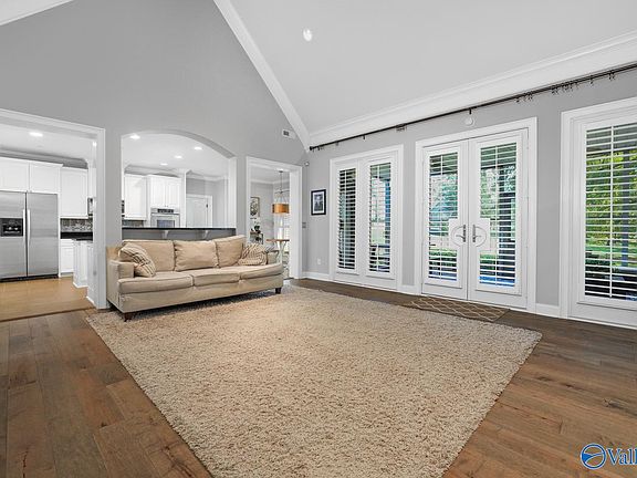 Luxurious Southern Living Oxford plan home in the gated Brigadoon community on Wheeler Lake. This 5-bed, 4-bath home sits on nearly 2 acres and features a WALKOUT BASEMENT, granite countertops, custom Welborn cabinets, Andersen windows, and solid core doors. With 10-foot ceilings, new flooring on the main level, 3 fireplaces, and plantation shutters throughout, the home offers elegance and comfort. Enjoy multiple outdoor spaces: a screened porch, covered patio, grilling area, and a wrought fence. With two kitchens, two living spaces, recreation, and bonus rooms, plus abundant storage, this home offers the best in Southern living. You can also enjoy the community pool.