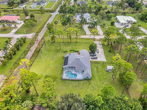 SELLER TO PROVIDE BUYER $5,000 FOR FULL PRICE OFFER!!! Elegant and spacious pool home in the Acreage with a 3 car garage. This property boasts solar panels that control the entire home! Come inside and be greeted by spacious living areas, along with an inviting kitchen. All of the bedrooms are spacious as well and offer ample closet space. Outside you will enjoy a beautiful fully fenced backyard, large screened in pool area, electric roll down hurricane shutters and is located just minutes to the Turnpike, I-95, Wellington, Boynton Beach, Downtown West Palm Beach, gorgeous area beaches and 3 international airports.